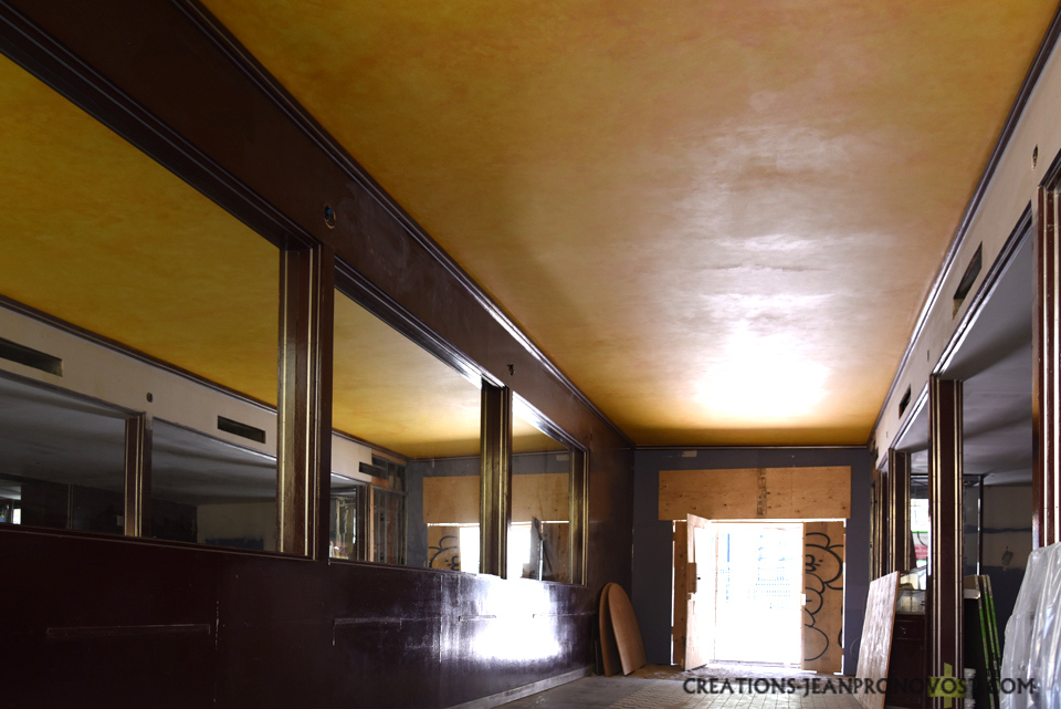 Les Créations Jean Pronovost, experts in faux finishes with over 25 years of experience, completed a painted faux ceiling project at L’Express, an iconic Montreal brasserie, in 2025.